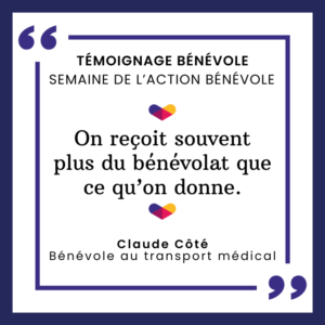 Rencontrez Claude, bénévole au transport médical à L’Actuel.