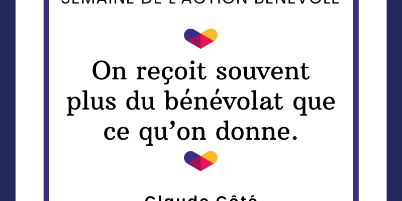 Pour Claude, le bénévolat est avant tout une occasion de rencontrer des gens, de se rendre utile… et tout simplement de se sentir heureux en faisant une différence.